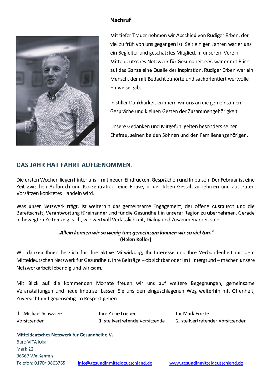 Im Namen des Vorstandes des Mitteldeutschen Netzwerks für Gesundheit e. V.